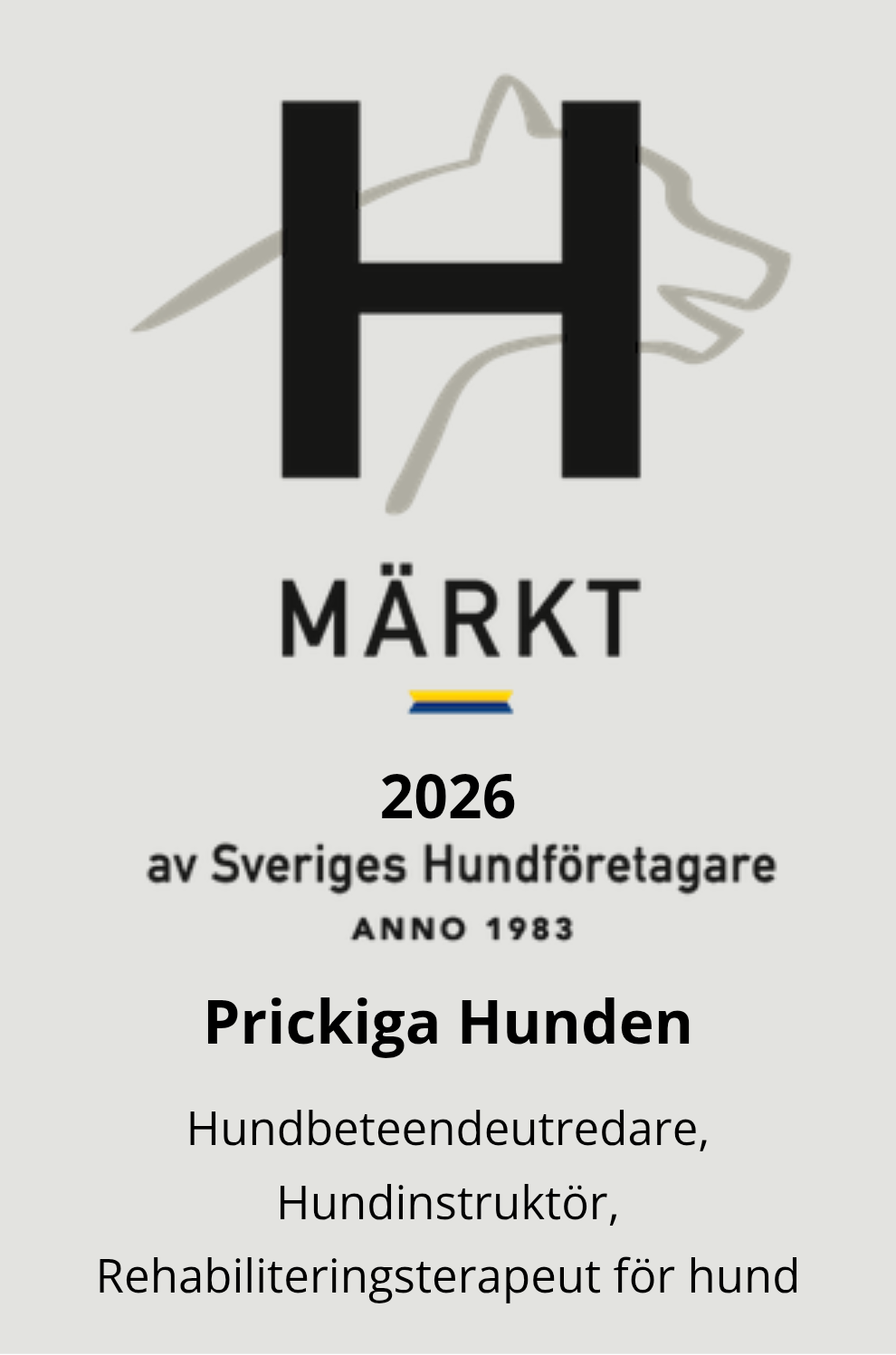 Jag är medlem i Sveriges Hundföretagare och H-märkt som hundinstruktör, hundbeteendeutredare (kallades tidigare hundpsykolog) och rehabiliteringsterapeut hund (kallades tidigare hundfysioterapeut). Jag har även genomfört en engelsk hundtränar- och beteendeutbildning (2018).